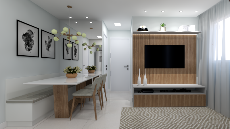 Área de lazer em varanda de apartamento.